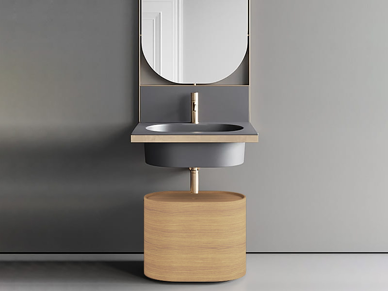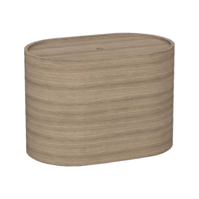 CIELO Пуф овальный из материала Livingtec на 4-х колесиках с деревянной шпонированной крышкой. Размеры: 60x38x43h.Цвет Rovere Naturale.