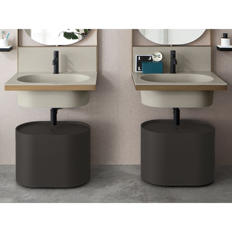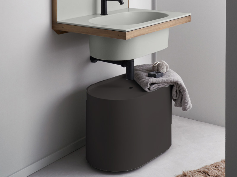 CIELO Пуф овальный из материала Livingtec на 4-х колесиках с деревянной крашенной крышкой. Размеры: 60x38x43h.Цвет Basalto.