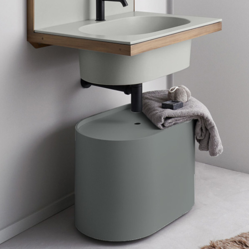 CIELO Пуф овальный из материала Livingtec на 4-х колесиках с деревянной крашенной крышкой. Размеры: 60x38x43h.Цвет Brina.
