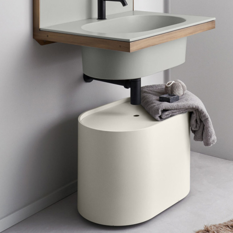 CIELO Пуф овальный из материала Livingtec на 4-х колесиках с деревянной крашенной крышкой. Размеры: 60x38x43h.Цвет Pomice.