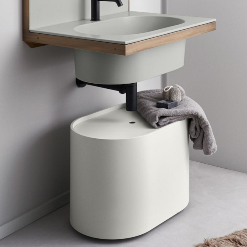 CIELO Пуф овальный из материала Livingtec на 4-х колесиках с деревянной крашенной крышкой. Размеры: 60x38x43h.Цвет Talco.