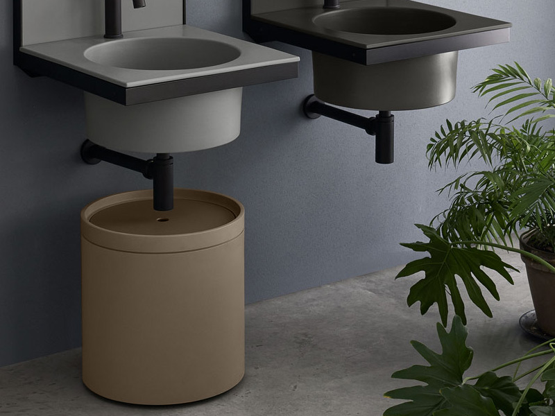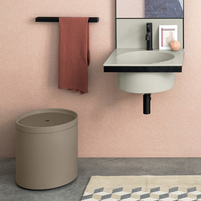 CIELO Пуф круглый из материала Livingtec на 4-х колесиках с деревянной крашенной крышкой. Размеры: 40x40x43h.Цвет Arenaria .