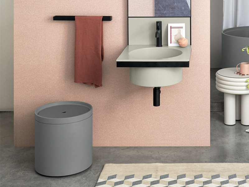 CIELO Пуф круглый из материала Livingtec на 4-х колесиках с деревянной крашенной крышкой. Размеры: 40x40x43h.Цвет Brina.