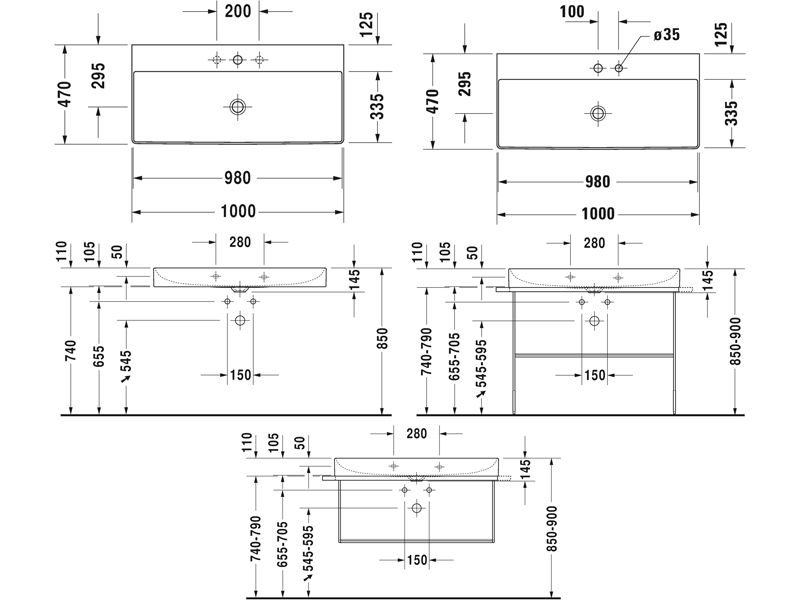 DURASQUARE Раковина без перелива с 1 отверстием под смеситель, 1000х470х110 мм, включая выпуск с керамической крышкой, цвет белый