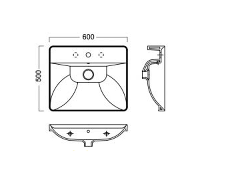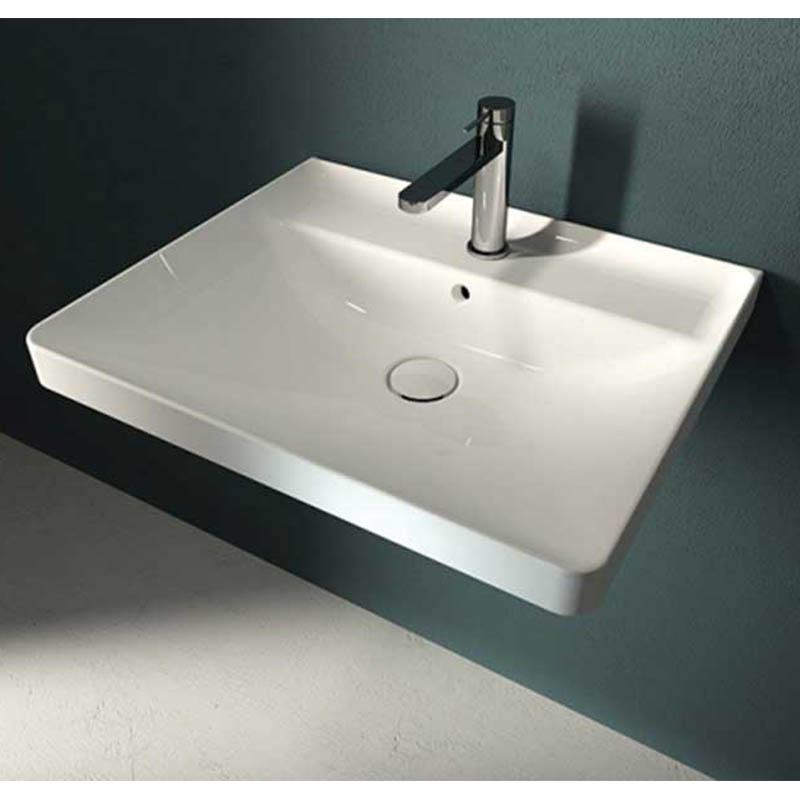 Раковина подвесная\встраиваемая HATRIA CANALGRANDE Y1EJ01, одно отверстие для смесителя, с отверстием перелива, размер 60х50 см, белая. Крепление для раковины в комплекте. Установка на стену или на тумбу.