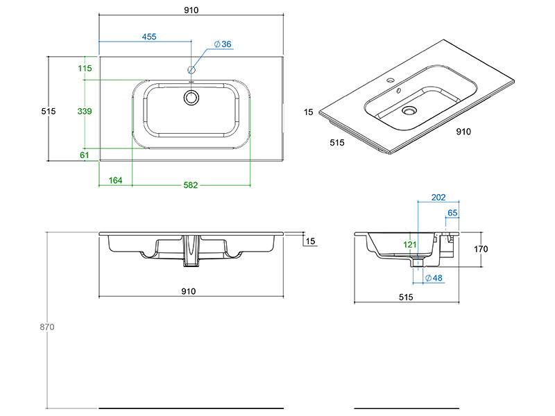 Раковина керамическая QUADRA, 91х51,5 см, с одним отверстием под смеситель, для тумбы SUVBS(2C/3C), цвет CRETA opaco. Продается только в комплекте с тумбой.