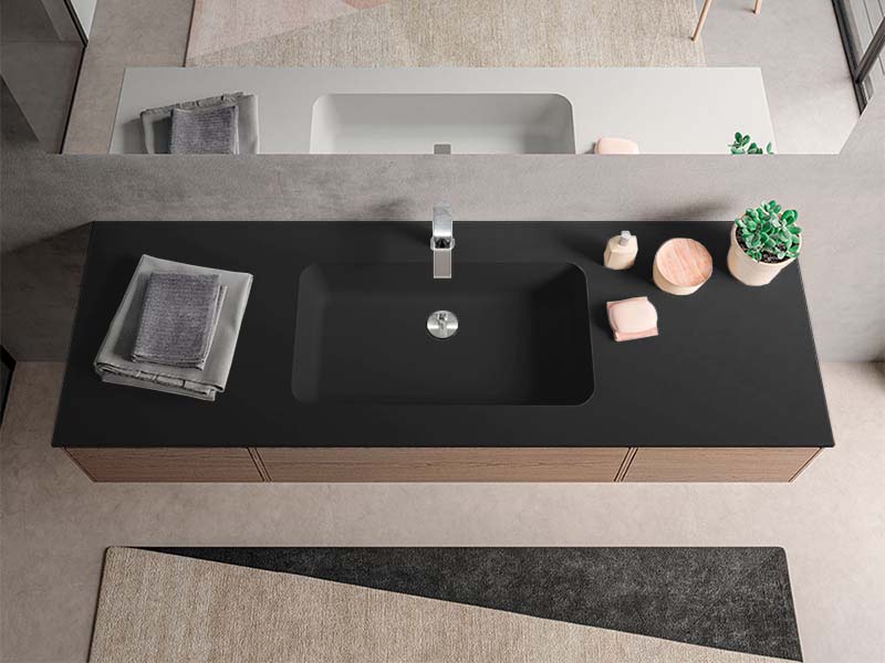 Раковина керамическая QUADRA, 106х51,5 см, с одним отверстием под смеситель, для тумбы SUVBS(2C/3C), цвет черный матовый. Продается только в комплекте с тумбой.