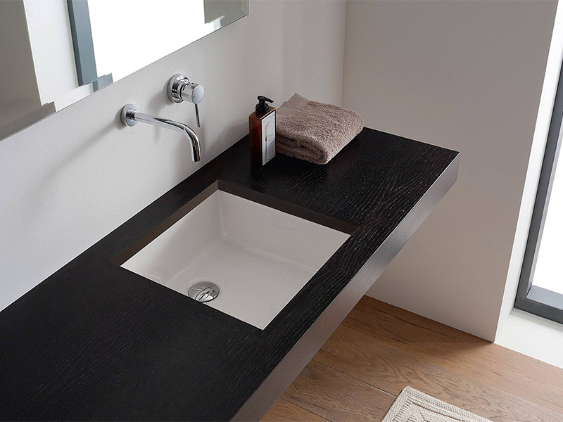 Квадратная форма и компактные размеры делают раковину удивительно элегантной и функциональной для многих дизайнерских концепций.