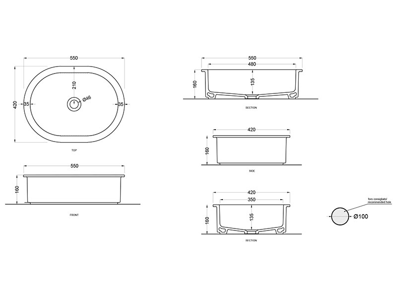 | Отверстие под смеситель | Отсутствует |