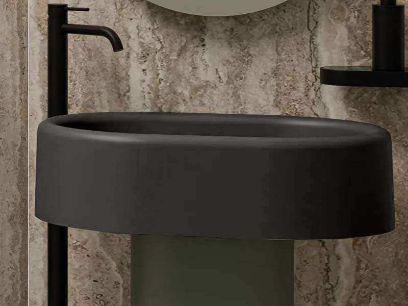 CIELO ITACA ITLAO Раковина накладная без отверстия под смеситель, без слива-перелива. Все стороны покрыты эмалью. Рекомендуется установка на столешницу или установка с пьедесталом. Размеры: 65x45x18h см. Цвет Basalto.