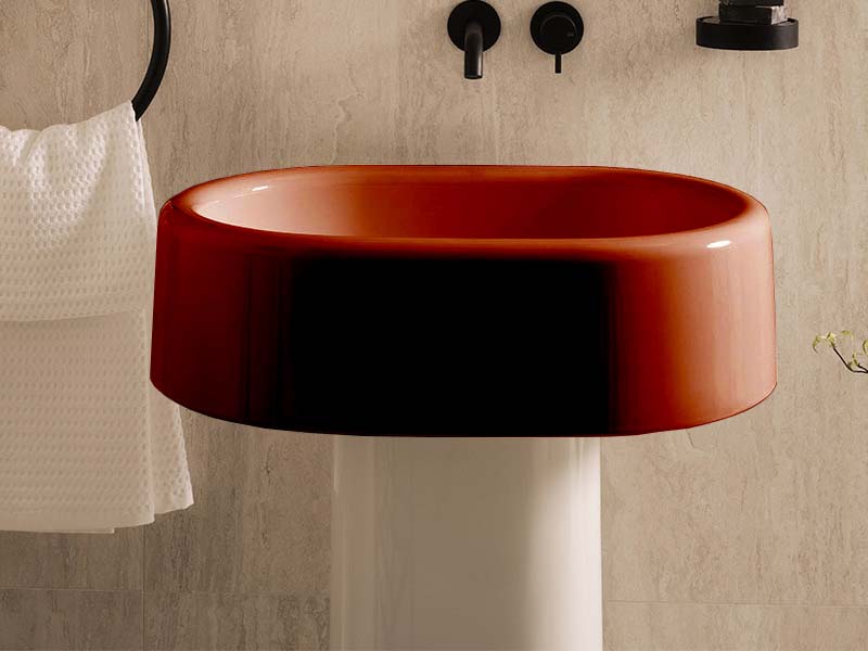 CIELO ITACA ITLAO Раковина накладная без отверстия под смеситель, без слива-перелива. Все стороны покрыты эмалью. Рекомендуется установка на столешницу или установка с пьедесталом. Размеры: 65x45x18h см. Цвет Corallo.