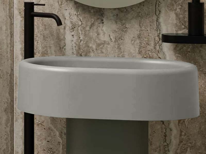 CIELO ITACA ITLAO Раковина накладная без отверстия под смеситель, без слива-перелива. Все стороны покрыты эмалью. Рекомендуется установка на столешницу или установка с пьедесталом. Размеры: 65x45x18h см. Цвет Pomice.