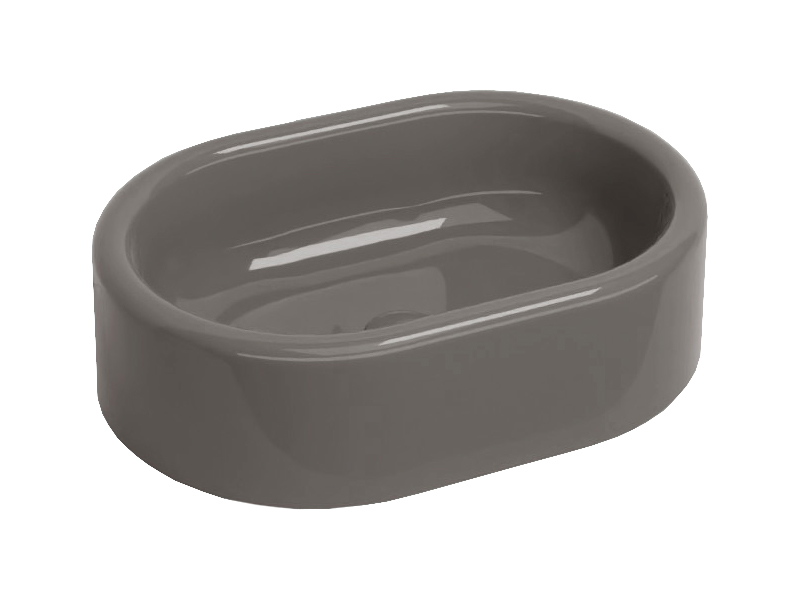 CIELO ITACA ITLAO Раковина накладная без отверстия под смеситель, без слива-перелива. Все стороны покрыты эмалью. Рекомендуется установка на столешницу или установка с пьедесталом. Размеры: 65x45x18h см. Цвет Talpa.