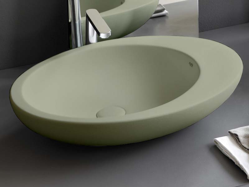 CIELO LE GIARE LGLA60 Раковина накладная без отверстия под смеситель, без слива-перелива. Рекомендованна установка на столешницу. Все стороны покрыты эмалью. Размеры: 60x45x14,5h см. Цвет Agave.