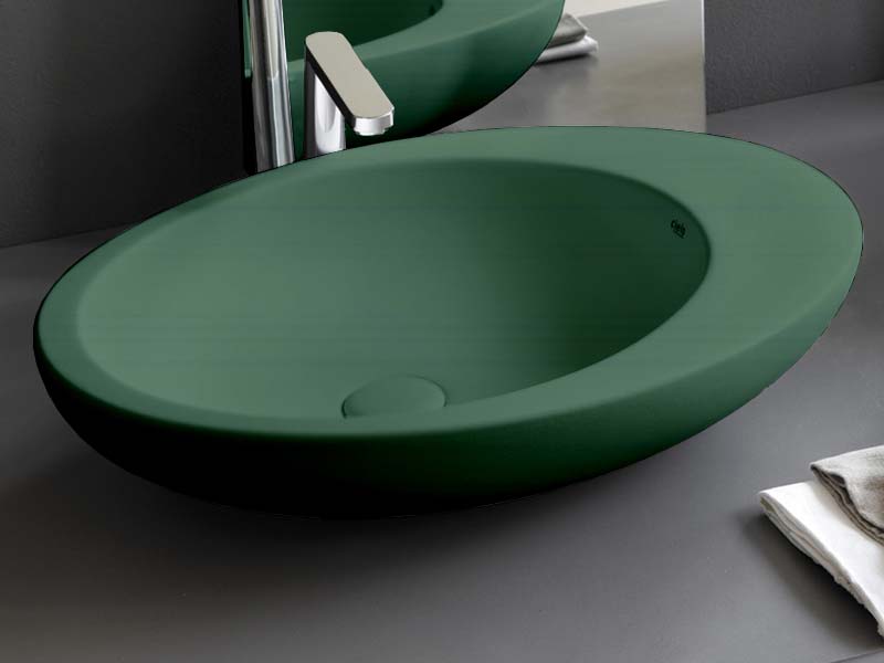 CIELO LE GIARE LGLA60 Раковина накладная без отверстия под смеситель, без слива-перелива. Рекомендованна установка на столешницу. Все стороны покрыты эмалью. Размеры: 60x45x14,5h см. Цвет Muschio.