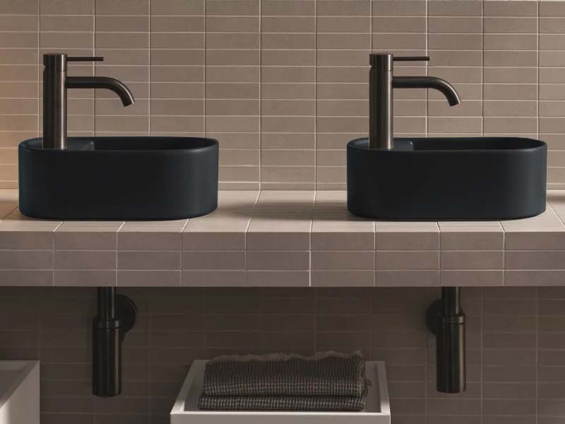 CIELO Les Petites Раковина накладная с одним отверстием под смеситель, без перелива. Все стороны покрыты эмалью. При установке на столешницу рекомендуется запросить опцию “RETTIFICA”. Размеры: 33,5x18,5x11,5h см. Цвет Lavagna.