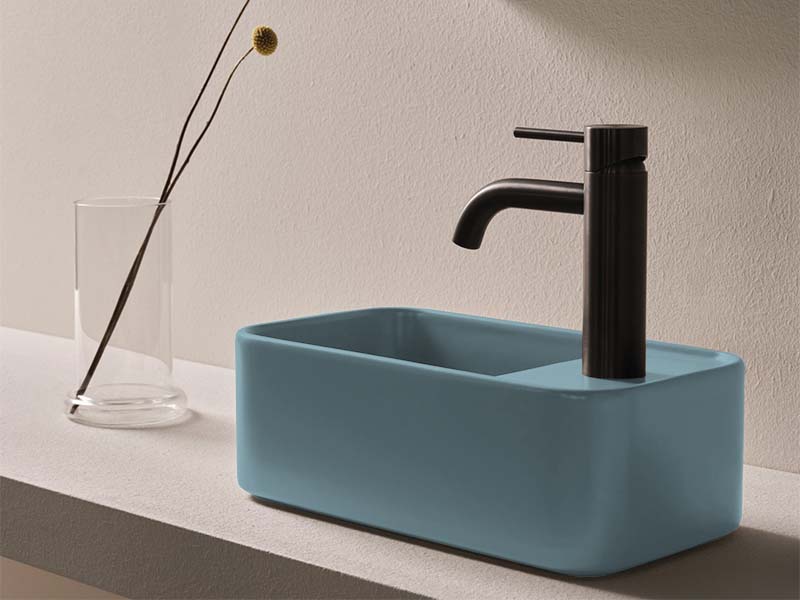 CIELO Les Petites Раковина накладная с отверстием под смеситель справа, без перелива. Все стороны покрыты эмалью. При установке на столешницу рекомендуется запросить опцию “RETTIFICA”. Размеры: 33,5x18,5x11,5h см. Цвет Talco.