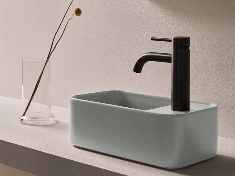 CIELO Les Petites Раковина накладная с отверстием под смеситель справа, без перелива. Все стороны покрыты эмалью. При установке на столешницу рекомендуется запросить опцию “RETTIFICA”. В комплекте с крепежами. Размеры: 33,5x18,5x11,5h см. Цвет Pomice.