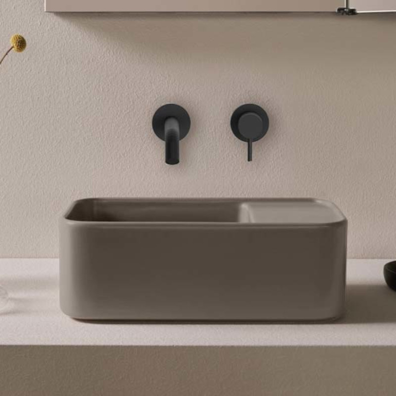 CIELO Les Petites Раковина накладная без отверстия под смеситель, без перелива. Все стороны покрыты эмалью. При установке на столешницу рекомендуется запросить опцию “RETTIFICA”. Размеры: 33,5x18,5x11,5h см. Цвет Arenaria.