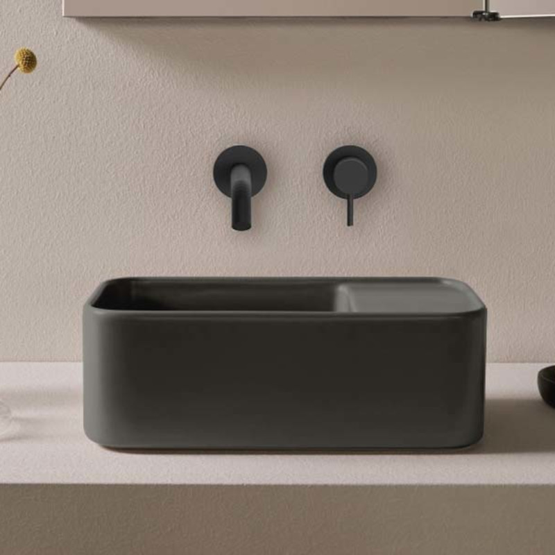 CIELO Les Petites Раковина накладная без отверстия под смеситель, без перелива. Все стороны покрыты эмалью. При установке на столешницу рекомендуется запросить опцию “RETTIFICA”. Размеры: 33,5x18,5x11,5h см. Цвет Fango.