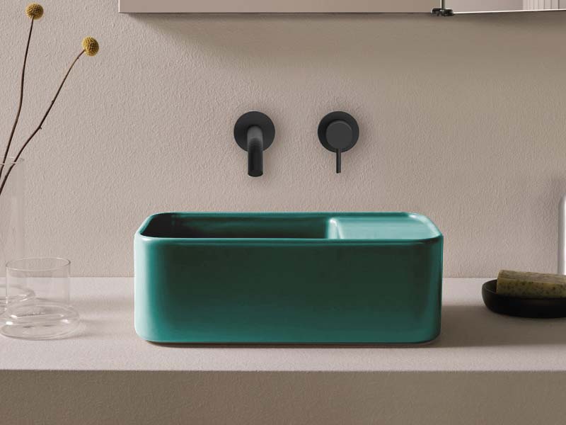 CIELO Les Petites Раковина накладная без отверстия под смеситель, без перелива. Все стороны покрыты эмалью. При установке на столешницу рекомендуется запросить опцию “RETTIFICA”. Размеры: 33,5x18,5x11,5h см. Цвет Smeraldo.