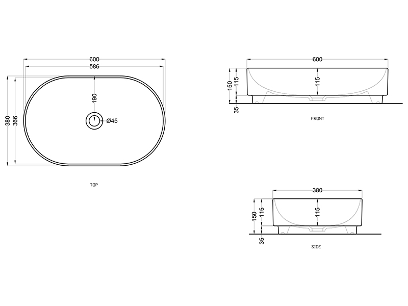 CIELO MARE MRLAO Раковина накладная без отверстия под смеситель, без перелива, все стороны покрыты эмалью, установка на столешницу. Размеры: 60 x 38 x h15см, цвет Lino. Представленная модель раковины существует в различных цветовых решениях.