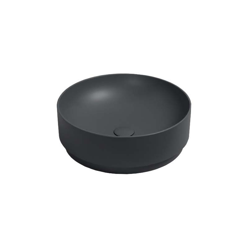 CIELO MARE MRLAT Раковина - чаша накладная без отверстия под смеситель, без перелива, все стороны покрыты эмалью, установка на столешницу. Размеры: d45 x h15 см, цвет Basalto. Представленная модель раковины существует в различных цветовых решениях.