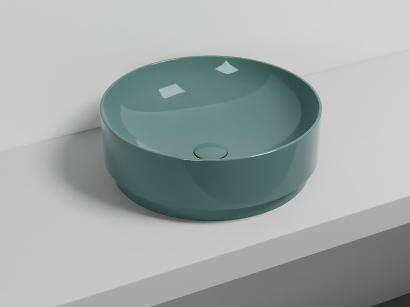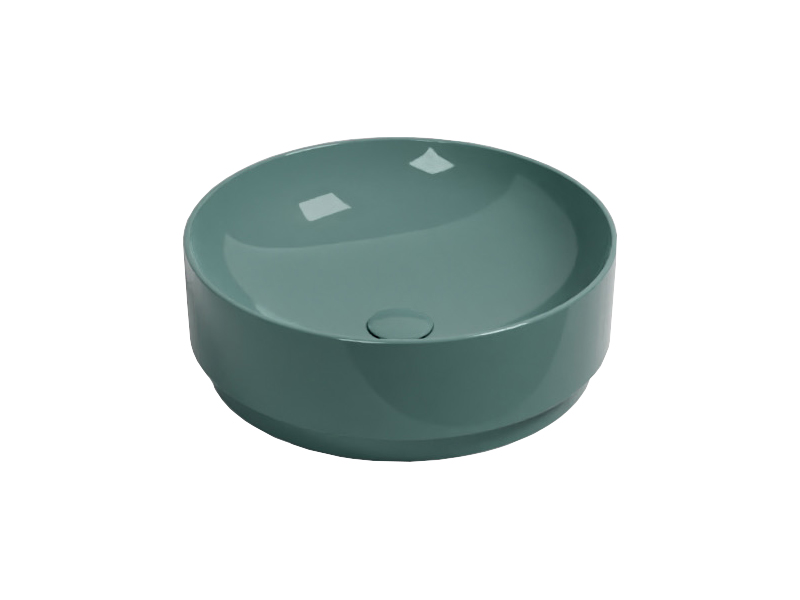 CIELO MARE MRLAT Раковина - чаша накладная без отверстия под смеситель, без перелива, все стороны покрыты эмалью, установка на столешницу. Размеры: d45 x h15 см, цвет Smeraldo. Представленная модель раковины существует в различных цветовых решениях.