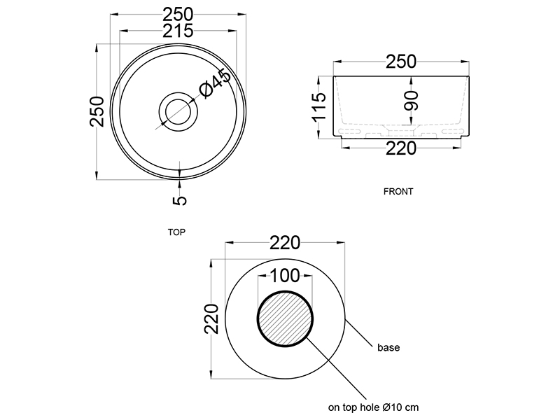 CIELO MINIMO MILAT Раковина накладная круглая без отверстий для смесителя,без слива-перелива. Все стороны покрыты эмалью,цвет Lavagna.