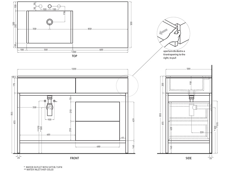 CIELO MILANO MILA Раковина встраиваемая на консоль с одним отверстием под смеситель, с возможностью выполнения трех отверстий, без слива-перелива, цвет Gloss White. Продается обязательно в сочетании: раковина MILA или MILASF + консоль MIST + ящик для консоли MIBCE.