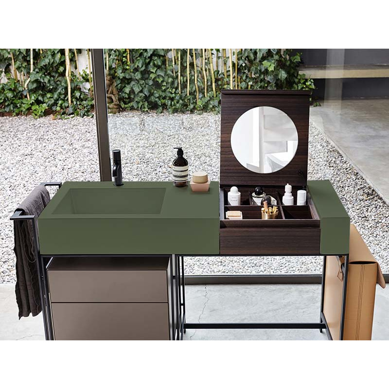 CIELO NARCISO NALA Раковина накладная на структуру и боковой элемент. Раковина с одним отверстием под смеситель с возможностью выполнения трех отверстий, без слива-перелива. цвет Agave. Обязательное сочетание: раковина NALA + элемент " Make Up" NAMUL или NAMUE + Структура для раковины NAST.