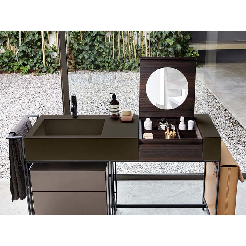 CIELO NARCISO NALA Раковина накладная на структуру и боковой элемент. Раковина с одним отверстием под смеситель с возможностью выполнения трех отверстий, без слива-перелива. цвет Fango. Обязательное сочетание: раковина NALA + элемент " Make Up" NAMUL или NAMUE + Структура для раковины NAST.