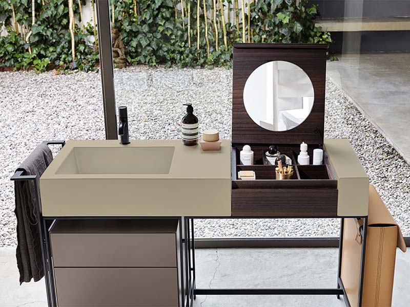 CIELO NARCISO NALA Раковина накладная на структуру и боковой элемент. Раковина с одним отверстием под смеситель с возможностью выполнения трех отверстий, без слива-перелива. цвет LIno. Обязательное сочетание: раковина NALA + элемент " Make Up" NAMUL или NAMUE + Структура для раковины NAST.