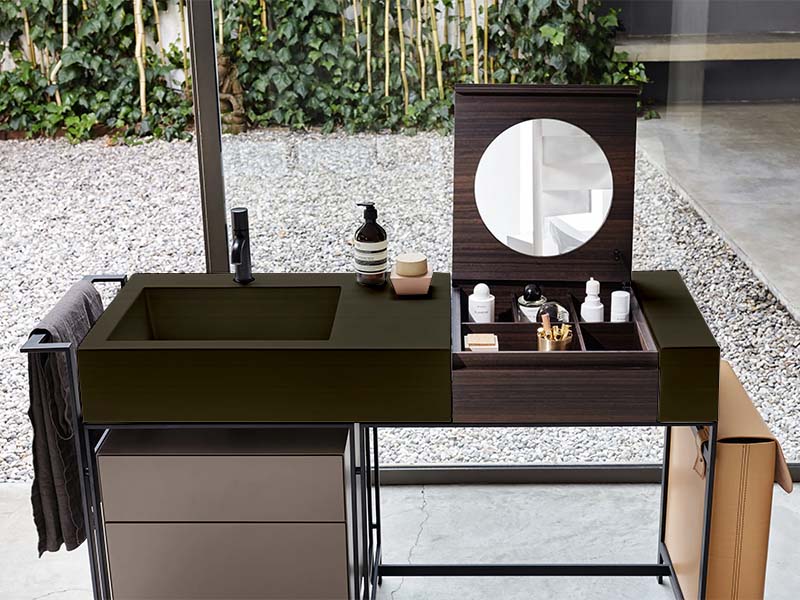 CIELO NARCISO NALA Раковина накладная на структуру и боковой элемент. Раковина с одним отверстием под смеситель с возможностью выполнения трех отверстий, без слива-перелива. цвет Lavagna. Обязательное сочетание: раковина NALA + элемент " Make Up" NAMUL или NAMUE + Структура для раковины NAST.