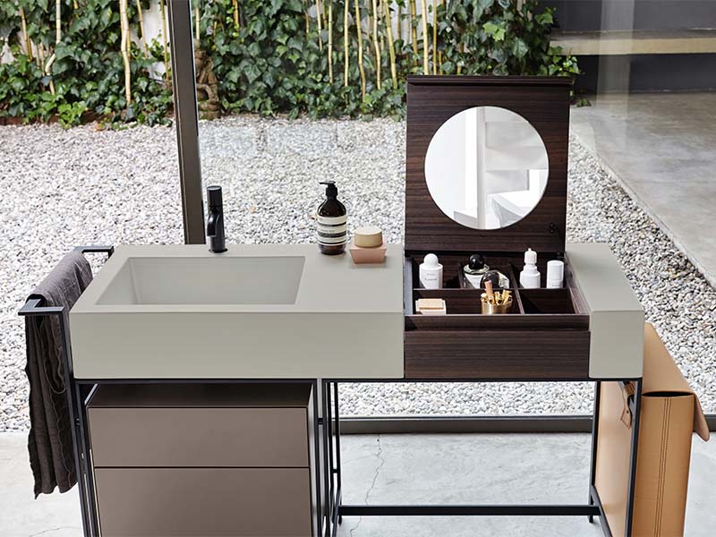 CIELO NARCISO NALA Раковина накладная на структуру и боковой элемент. Раковина с одним отверстием под смеситель с возможностью выполнения трех отверстий, без слива-перелива. цвет Pomice. Обязательное сочетание: раковина NALA + элемент " Make Up" NAMUL или NAMUE + Структура для раковины NAST.