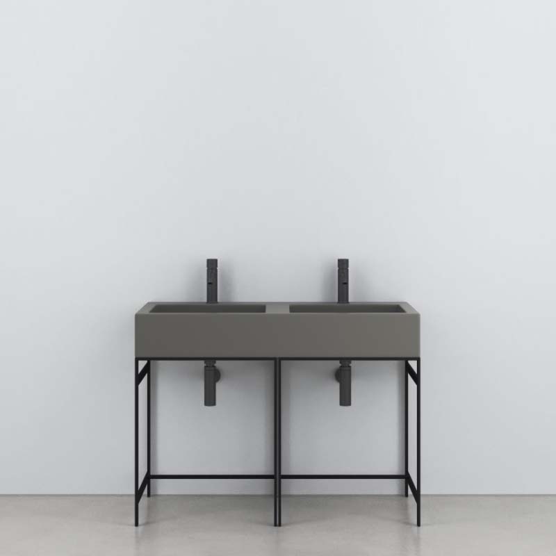CIELO NARCISO Doppio NALADSF Раковина накладная или подвесная без отверстий под смеситель, без слива-перелива, две чаши. Одна сторона не покрыта эмалью, в комплекте с крепежами. Установка на консоль,столешницу, возможна подвесная установка. Размеры :113 x 50 x 16,5h см, цвет Cemento.