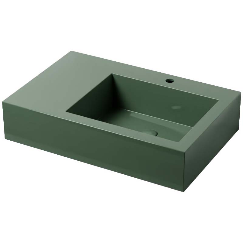 CIELO NARCISO NALAMDX Раковина накладная с одним отверстием под смеситель с возможностью выполнения трех отверстий, без слива-перелива, чаша справа,одна сторона не покрыта эмалью. В комплекте с крепежами.Установка на столешницу, возможна подвесная установка. Размеры: 76 x 50 x 16,5 h см, цвет Alga
