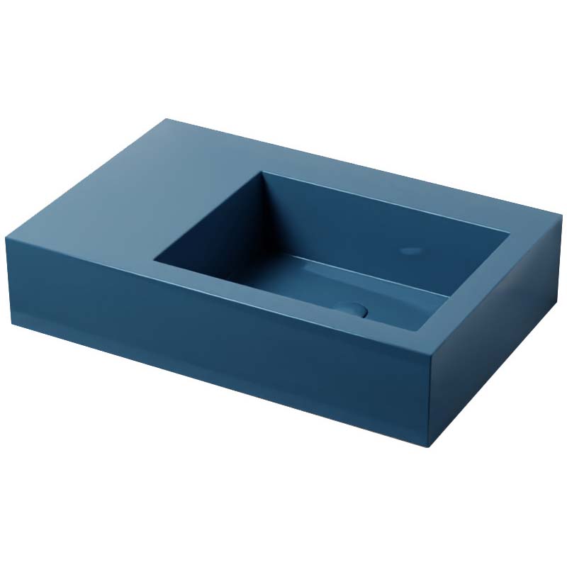 CIELO NARCISO NALAMDXSF Раковина накладная без отверстий под смеситель, без слива-перелива, чаша справа,одна сторона не покрыта эмалью. В комплекте с крепежами.Установка на столешницу, возможна подвесная установка.Размеры:76 x 50 x 16,5 h см, цвет Oltremare
