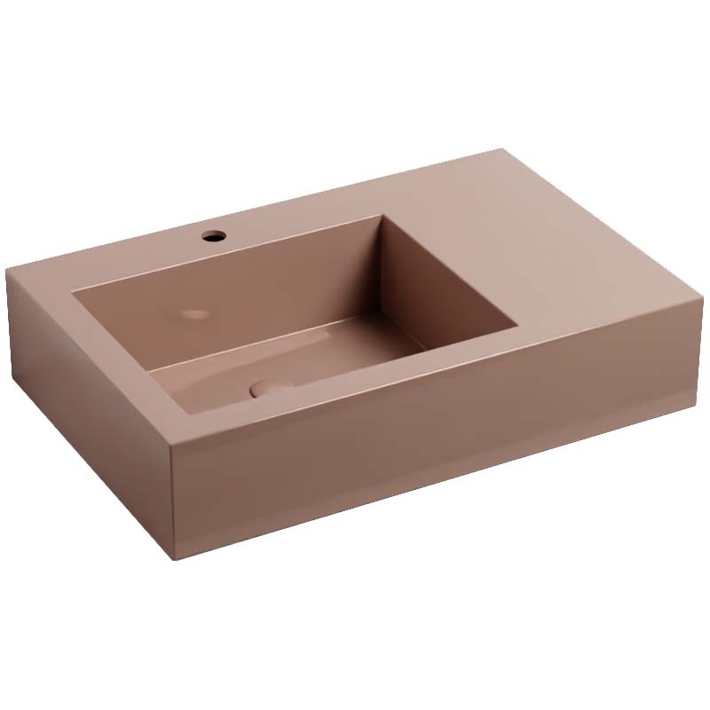 CIELO NARCISO NALAMSX Раковина накладная с одним отверстием под смеситель с возможностью выполнения трех отверстий, без слива-перелива, чаша слева,одна сторона не покрыта эмалью. В комплекте с крепежами.Установка на столешницу, возможна подвесная установка.Размеры:76 x 50 x 16,5 h см, цвет Ninfea