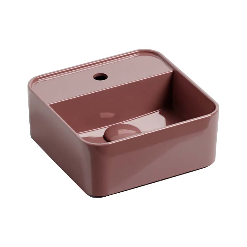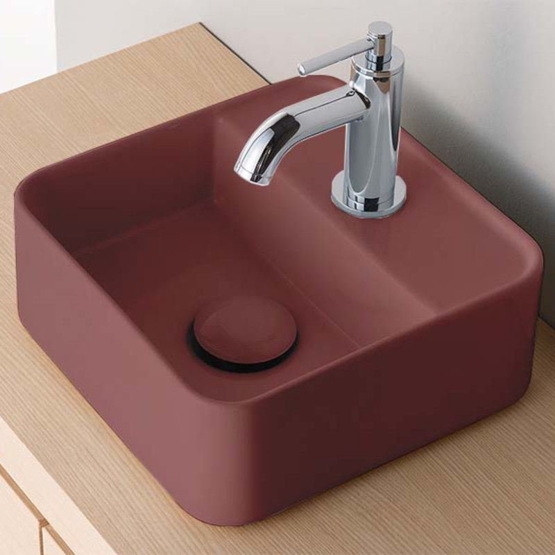 CIELO SHUI COMFORT LPLAQ Раковина накладная с одним отверстием под смеситель, без слива- перелива, все стороны покрыты эмалью, для установки на столешницу. Размеры: 28x28x11,5 h. Цвет Corallo.