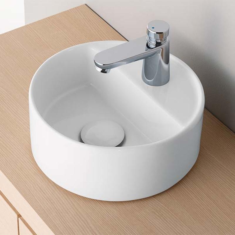 CIELO SHUI COMFORT LPLAT Раковина накладная с одним отверстием под смеситель, без слива- перелива, все стороны покрыты эмалью, для установки на столешницу. Размеры: d28x11,5 h. Цвет Gloss White.