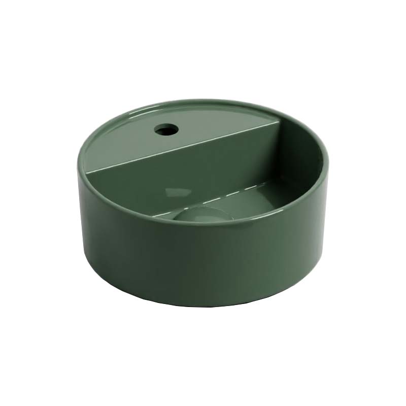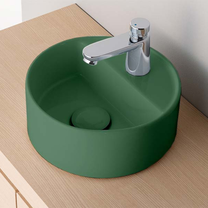 CIELO SHUI COMFORT LPLAT Раковина накладная с одним отверстием под смеситель, без слива- перелива, все стороны покрыты эмалью, для установки на столешницу. Размеры: d28x11,5 h. Цвет Alga.