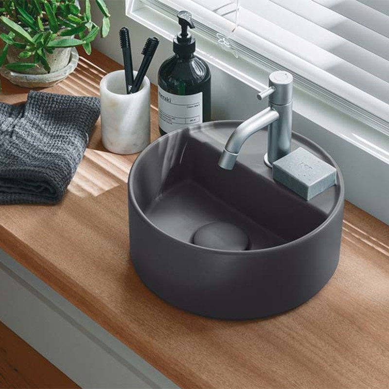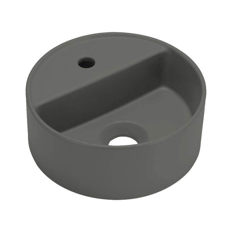 CIELO SHUI COMFORT LPLAT Раковина накладная с одним отверстием под смеситель, без слива- перелива, все стороны покрыты эмалью, для установки на столешницу. Размеры: d28x11,5 h. Цвет Cemento.