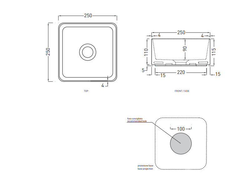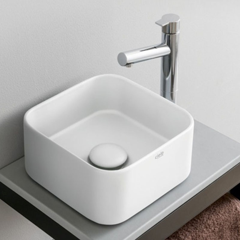CIELO MINIMO MILAQ Раковина накладная квадратная без отверстий под смеситель,без слива-перелива. Все стороны покрыты эмалью. Размеры: 25x25x11,5 h. Цвет Gloss White.