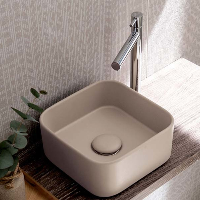 CIELO MINIMO MILAQ Раковина накладная квадратная без отверстий под смеситель,без слива-перелива. Все стороны покрыты эмалью. Размеры: 25x25x11,5h. Цвет Avena.