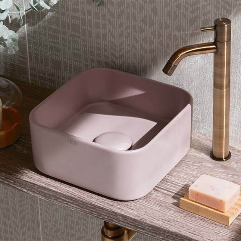 CIELO MINIMO MILAQ Раковина накладная квадратная без отверстий под смеситель,без слива-перелива. Все стороны покрыты эмалью. Размеры: 25x25x11,5h. Цвет cipria.