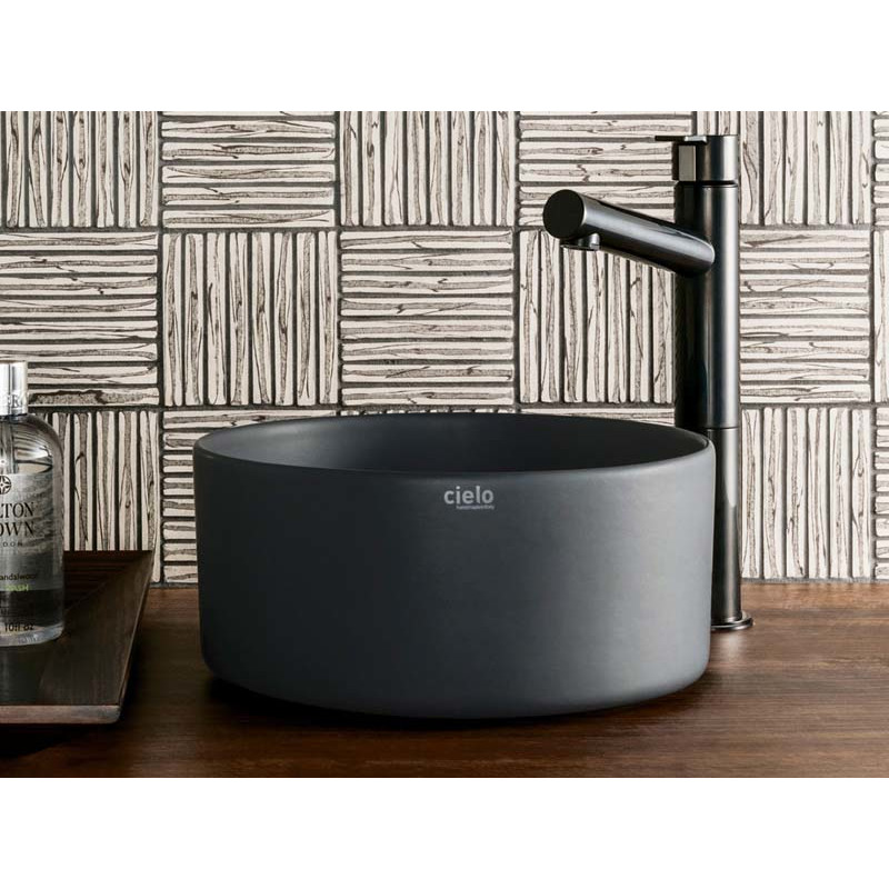 CIELO MINIMO MILAT Раковина- чаша накладная без отверстия под смеситель, без слива- перелива, все стороны покрыты эмалью, для установки на столешницу. Размеры: ø25x11,5h см. Цвет Basalto.