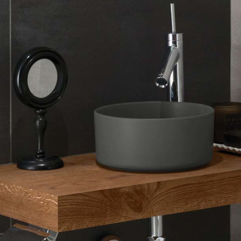 CIELO MINIMO MILAT Раковина- чаша накладная без отверстия под смеситель, без слива- перелива, все стороны покрыты эмалью, для установки на столешницу. Размеры: ø25x11,5h см. Цвет cemento.
