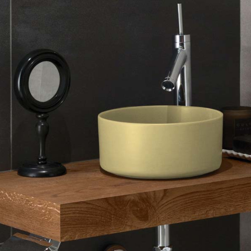CIELO MINIMO MILAT Раковина- чаша накладная без отверстия под смеситель, без слива- перелива, все стороны покрыты эмалью, для установки на столешницу. Размеры: ø25x11,5h см. Цвет canapa.