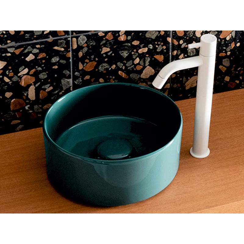 CIELO MINIMO MILAT Раковина- чаша накладная без отверстия под смеситель, без слива- перелива, все стороны покрыты эмалью, для установки на столешницу. Размеры: ø25x11,5h см. Цвет Smeraldo.